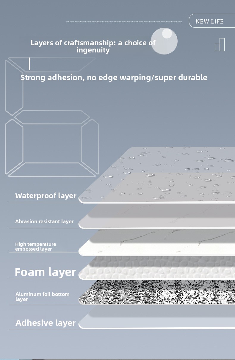 Waterproof: Resistant to moisture, ideal for kitchen and bathroom use.